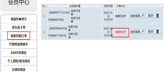 如果包裹没有到齐,按继续编辑,只能用作修改订单相关信息,不能选择渠道!